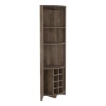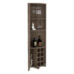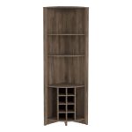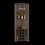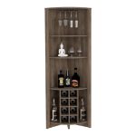 The Castle Corner Bar Cabinet is perfect for your urban home. You’ll love the ample storage with three shelves (15,5”H X 11,8”H X 17,7”H ), eight wine cubbies (4,4”), and a cup rack ideal for your glasses. Designed with elegant Dark Brown manufactured wood finish.