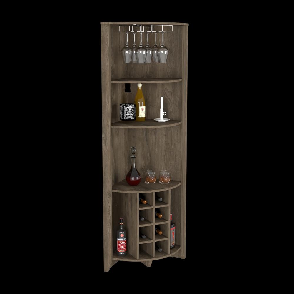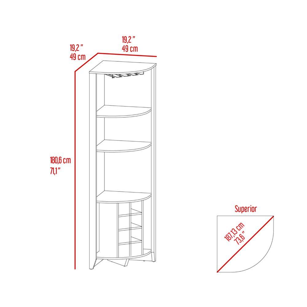 The Castle Corner Bar Cabinet is perfect for your urban home. You’ll love the ample storage with three shelves (15,5”H X 11,8”H X 17,7”H ), eight wine cubbies (4,4”), and a cup rack ideal for your glasses. Designed with elegant Dark Brown manufactured wood finish.