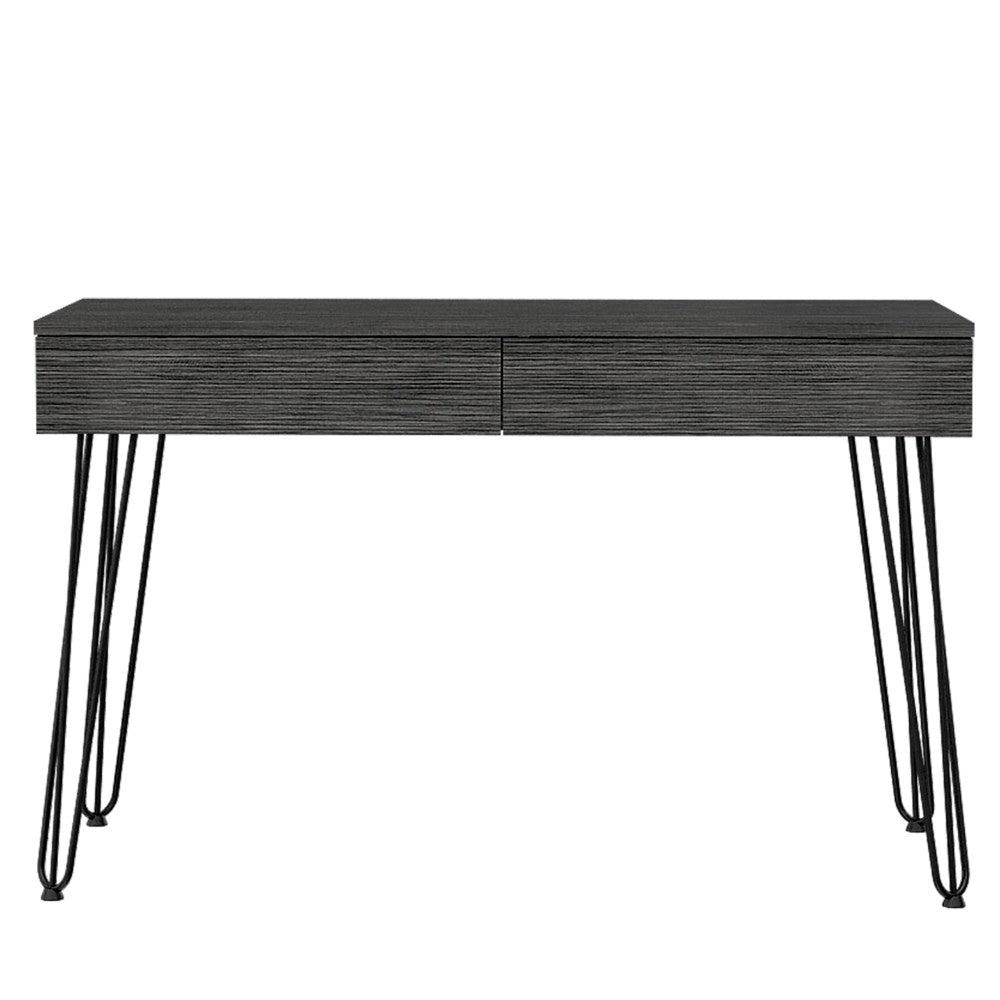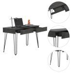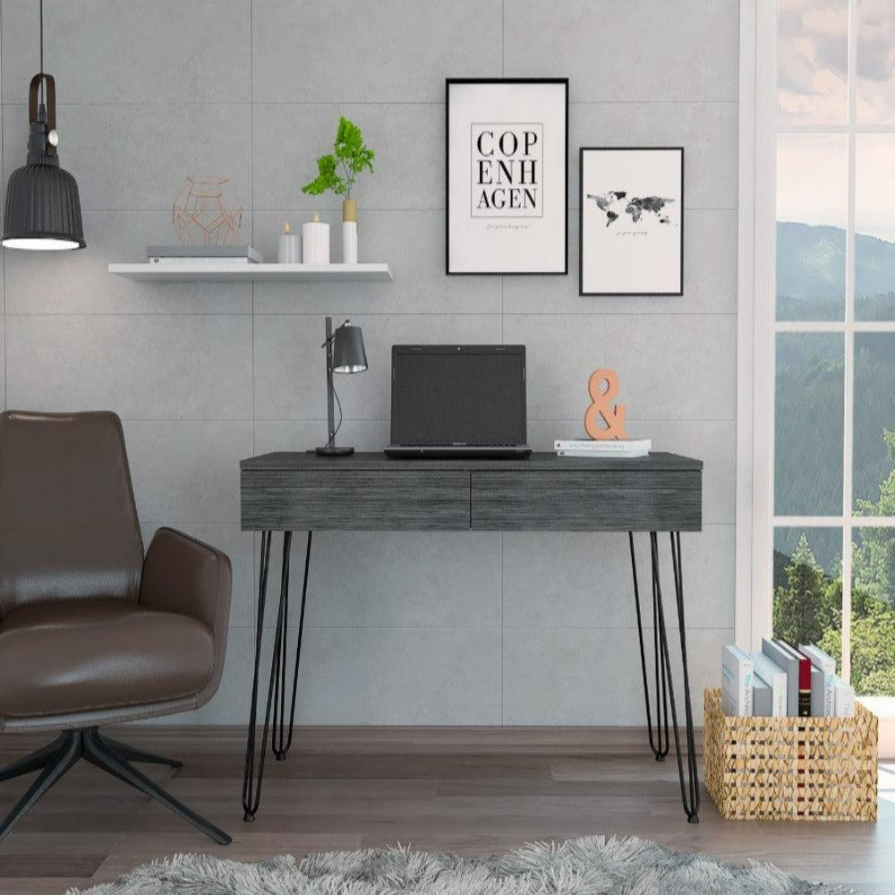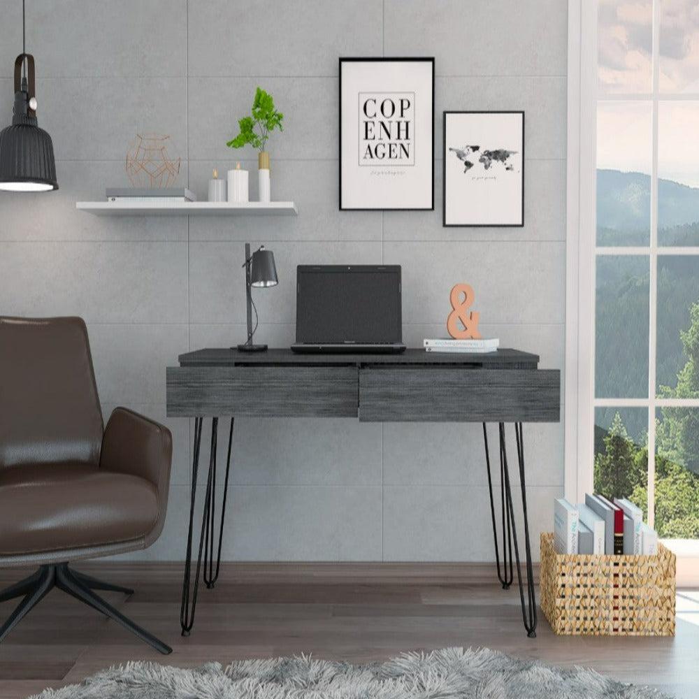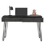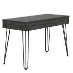 The Hinsdale Desk is a modern design that will give you an excellent option to set up your home office. Its compact sketch gives your space a touch of elegance. Modern styling in a compact design, stylish long metal legs give it a beautiful look, and two spacious drawers below the work surface are perfect for storage. Designed with an elegant smokey oak manufactured wood.