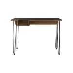 Rolo140 Writing Desk, this original and spectacular desk, simple to perform everyday tasks, very comfortable and ergonomic, with plenty of space to accomplish your tasks without any discomfort, is notable for you. It has a small shelf very different from the normal ones where you can store notebooks, books, or any accessories you need to have on hand. At 29″ high, the legroom is considerable and will allow you to work comfortably. The hairpin legs will provide sturdy support, and the particleboard frame includes a see-through shelf to store your items. It also includes exclusive tempered glass on top to give you that extra modern design touch and provide you with plenty of room to work. Designed with elegant mahogany manufactured wood finish.
