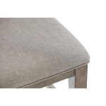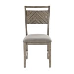 A gorgeous transitional style with classic characteristics. These dining chairs feature seats that are upholstered in a light gray polyester fabric with a slat back that has a diagonal planked wood design. The Smokey Oak finish describes the subtle light gray frame color perfectly. A clean uncomplicated easy style and finish that will work with a lot of today’s interiors.