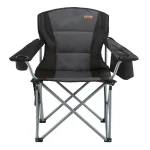 VEVOR Camping Folding Chair for Adults, Portable Heavy Duty Outdoor Quad Lumbar Back Padded Arm Chairs with Side Pockets, Cup Holder and Cooler Bag for Beach, Lawn, Picnic, Fishing, Backpacking, Black