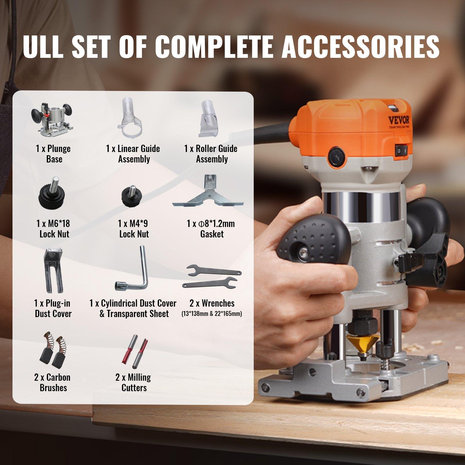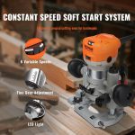 VEVOR Wood Router, 1.25HP 800W, Compact Wood Trimmer Router Combo Tool with Plunge and Fixed Base, 30000RPM 6 Variable Speeds, with 1/4” & 5/16” Collets Dust Hood, for Woodworking Slotting Trimming